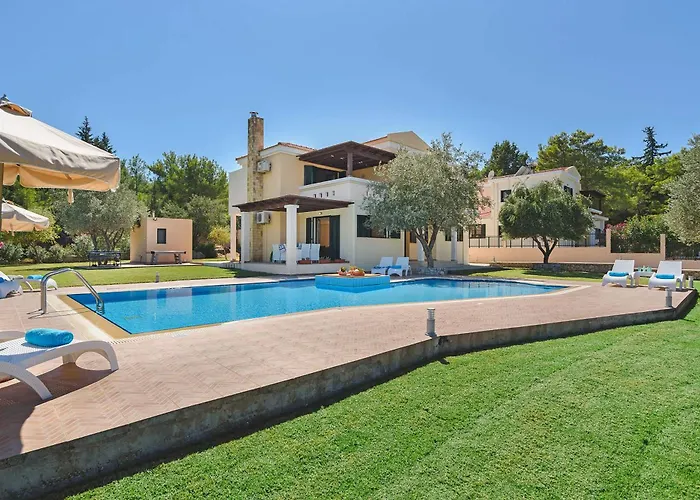 Die Seven Springs Dimitra verfügt über eine sonnige Terrasse mit Blick auf die Berge und ist 35 Autominuten vom Flughafen Rhodos 'Diagoras' entfernt gelegen. Diese Villa bietet einen Außenpool sowie Tischtennis für aktive Gäste.